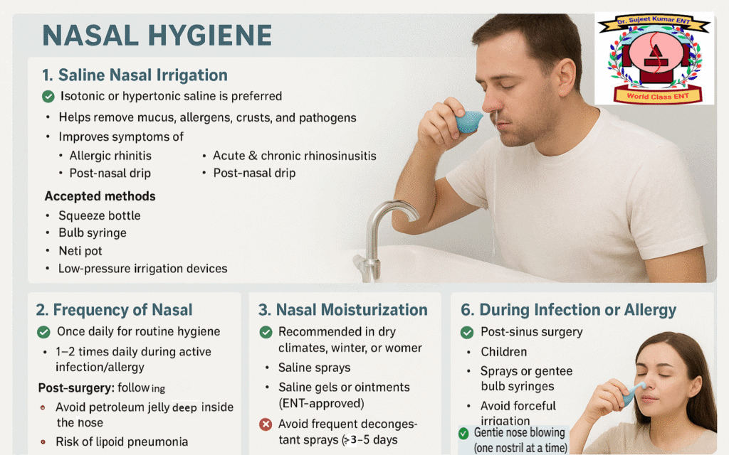 тАЬClean gently, irrigate safely, and seek care when symptoms persist.тАЭ тАФ Guidance consistent with AAOтАСHNS clinical practice recommendations for sinus and nasal health.